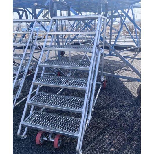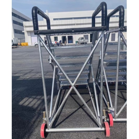便携性:七步梯通常采用可折叠或可拆卸设计,便于运输和存储。同时,它们通常配备有轮子,以便于机场工作人员在需要时快速移动。